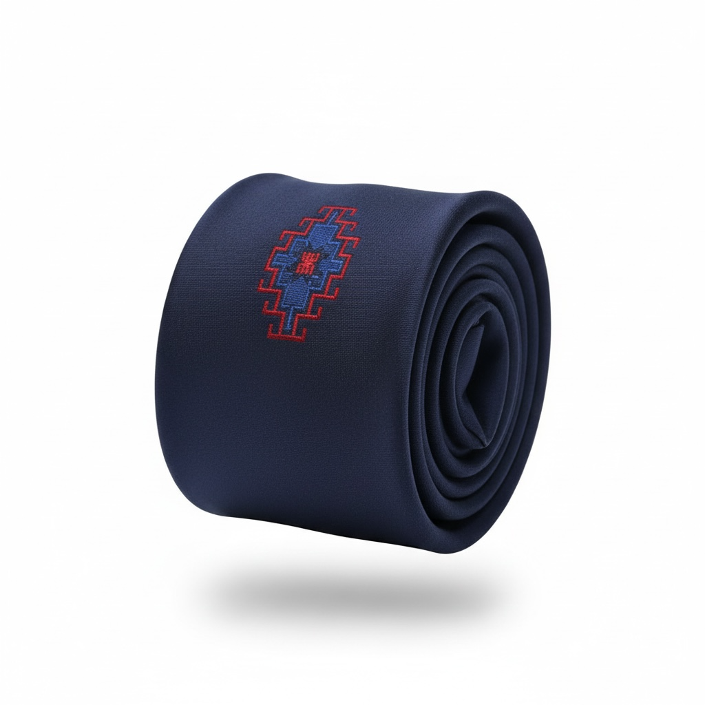 Introducing the Armenian Rug Underknot Silk Necktie by Anet's Collection — a navy silk tie featuring the iconic Armenian Rug motif positioned to appear just below the knot, creating a striking focal point the moment you loosen your collar or step into the room. This signature placement is a design detail unique to Anet's Collection, introduced by designer Anet Abnous.